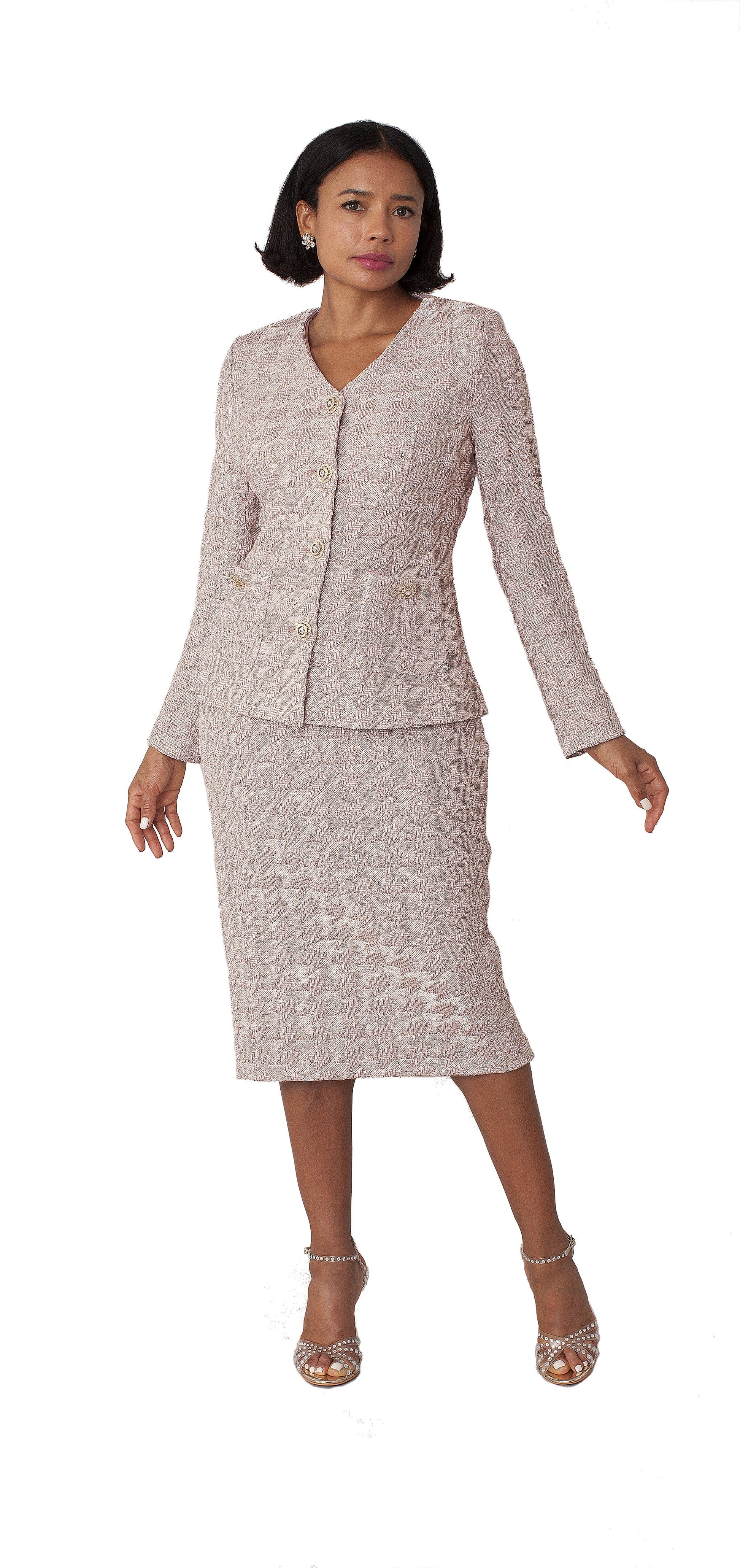 Peach Textured Knit 2-Piece Midi Suit w/ Button Front Jacket – 7319