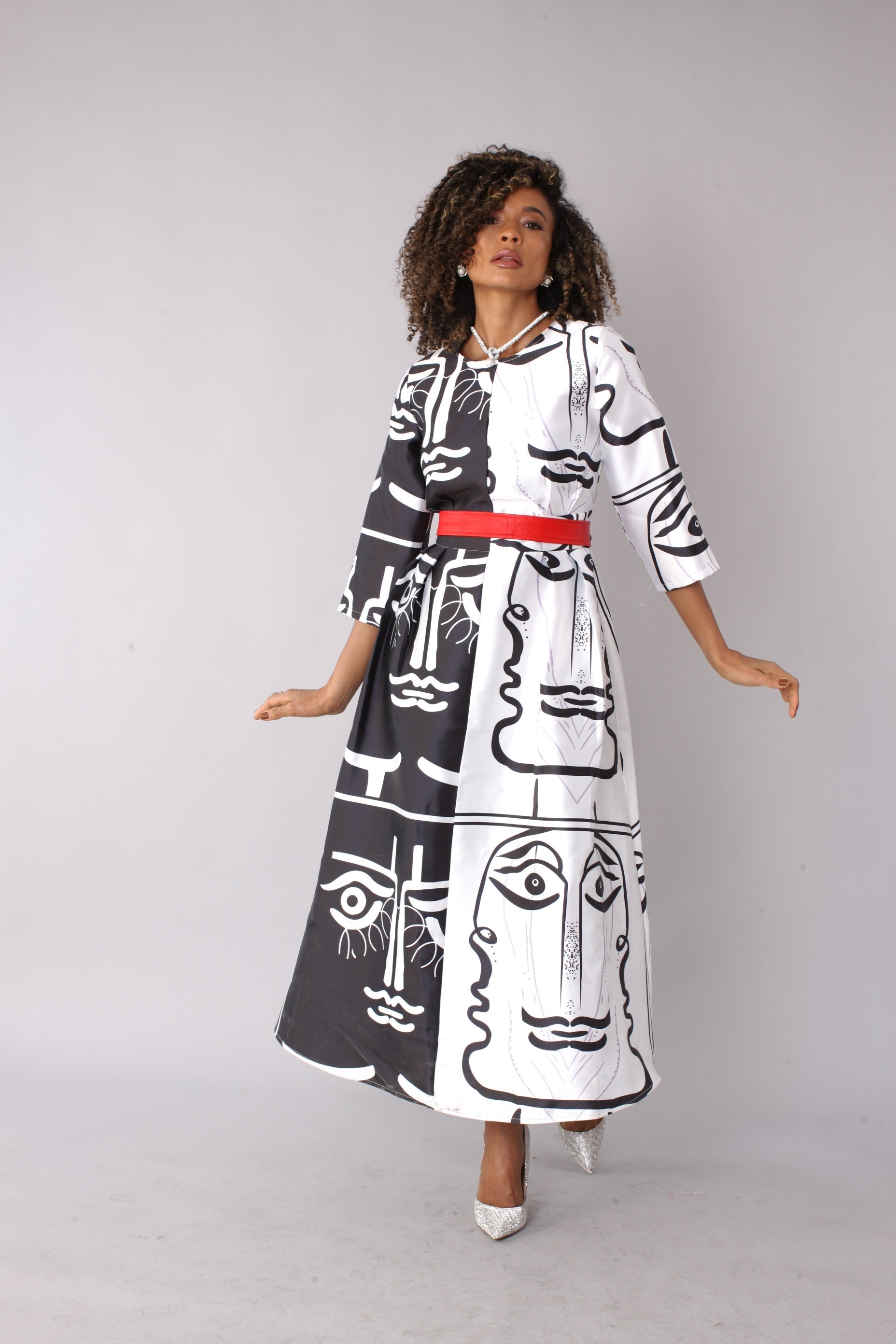 Wrap yourself in sophistication with this silk-like, long one-piece dress, designed for elegance and versatility. Perfect for church and formal events, it features a cinched waist for a flawless silhouette, a sparkling rhinestone brooch for added glamour, and elegant 3/4 sleeves. Available in a variety of prints and solids to suit every style.